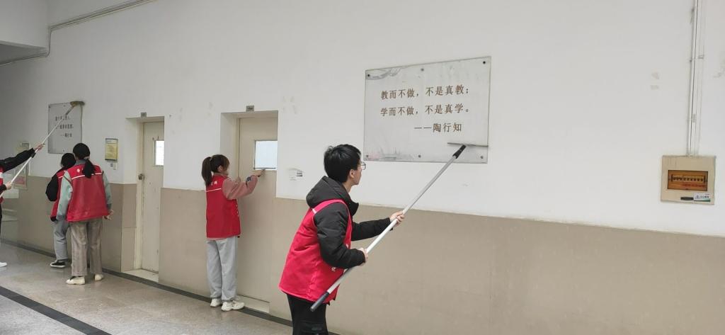 该班另一部分同学在图书馆、博约楼、校园内进行维护环境劳动。
