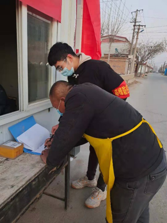崔庄镇郝王庄村封锁了全部道路,就留下一条主路,设置了疫情防控监测站,对外来车辆劝返,其他车辆进村时则需要登记,测体温。看到村里正在招募老员工志愿者,姜宇轩即刻就报了名,主要负责车辆的放行和来往人员登记工作。
