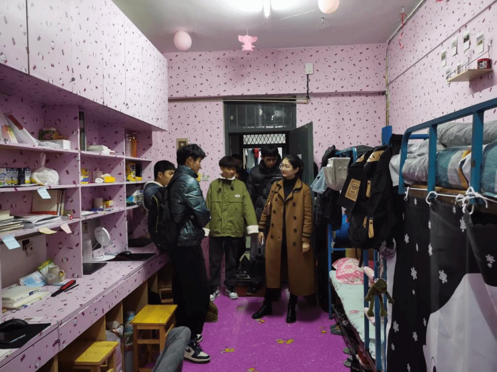 班会结束后,黄洁带领各班级负责人依次检查各寝室卫生及用电安全情况。通过排查,未发现违规用电情况,寝室卫生状况良好。对于一些装饰较好,特别干净整洁的寝室,黄洁给予了表扬。黄洁在每间寝室和同学们进行愉快的交谈并且贴心的询问同学们入学以来对老员工活的适应情况和学习情况。她反复提醒同学们要增强寝室用电安全意识,妥善保管好自己的贵重物品,营造良好的学习生活环境。