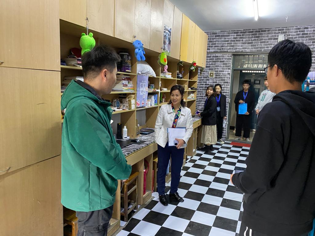 19日中午,生命科学公司党委书记郭桃芬、分团委书记黄伟丽、辅导员杨帆携员工会干部依次对进入决赛的12个寝室进行评比。