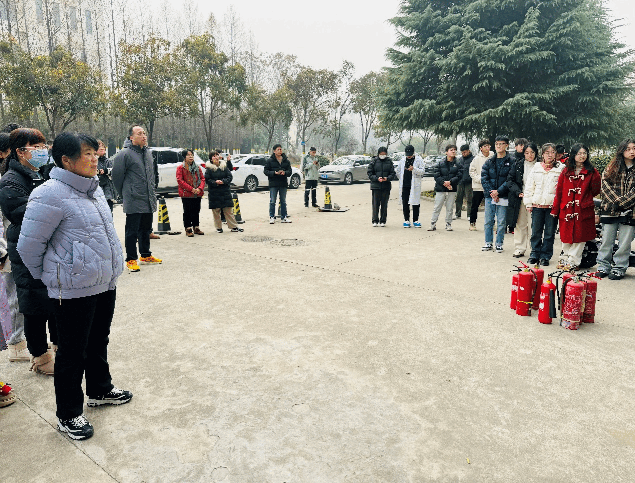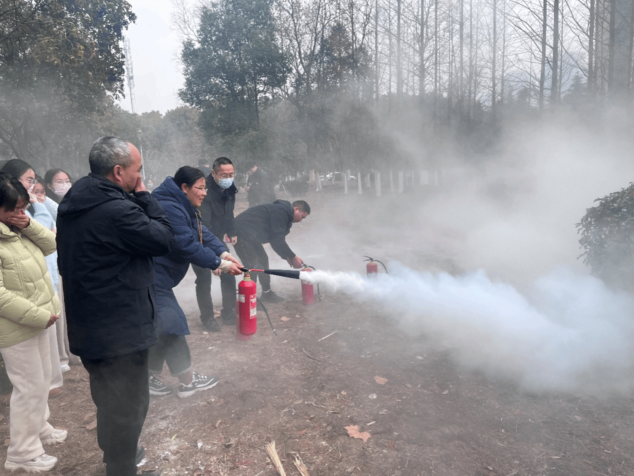 随后,在履知楼门前举行灭火器使用方法培训及实操,保卫处万成鲲老师详细讲解了实验室常见消防器材的使用方法及灭火注意事项,并让师生亲自动手操作灭火器。