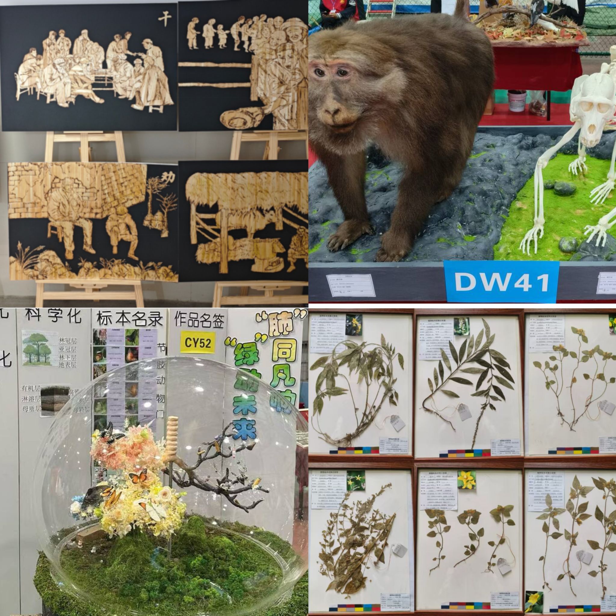通过标本展示和答辩环节,公司张启信、陶瑞松老师指导,黄玲玲、顾继瑞等同学的作品《藏酋猴的剥制与骨骼标本》荣获动物组一等奖;王玲玲、陈延松老师指导,袁如意、王怡然等同学的作品《四种秤锤树属植物标本》荣获植物组一等奖;王占军、周璐璐、陆伟老师指导,侯铸珍、曹颖等同学的作品《一纸契约》荣获创意组一等奖。欧祖兰老师指导的《樟科山胡椒属几个种的区分》和王晶晶老师指导的《“肺”同凡响,“绿”动未来》荣获二等奖,陶瑞松、耿明老师指导的《实验动物标本展示》、杨星星、陈延松老师指导的《珍珠菜属植物标本》以及陈亚军老师指导的《药韵龙翔》荣获三等奖。