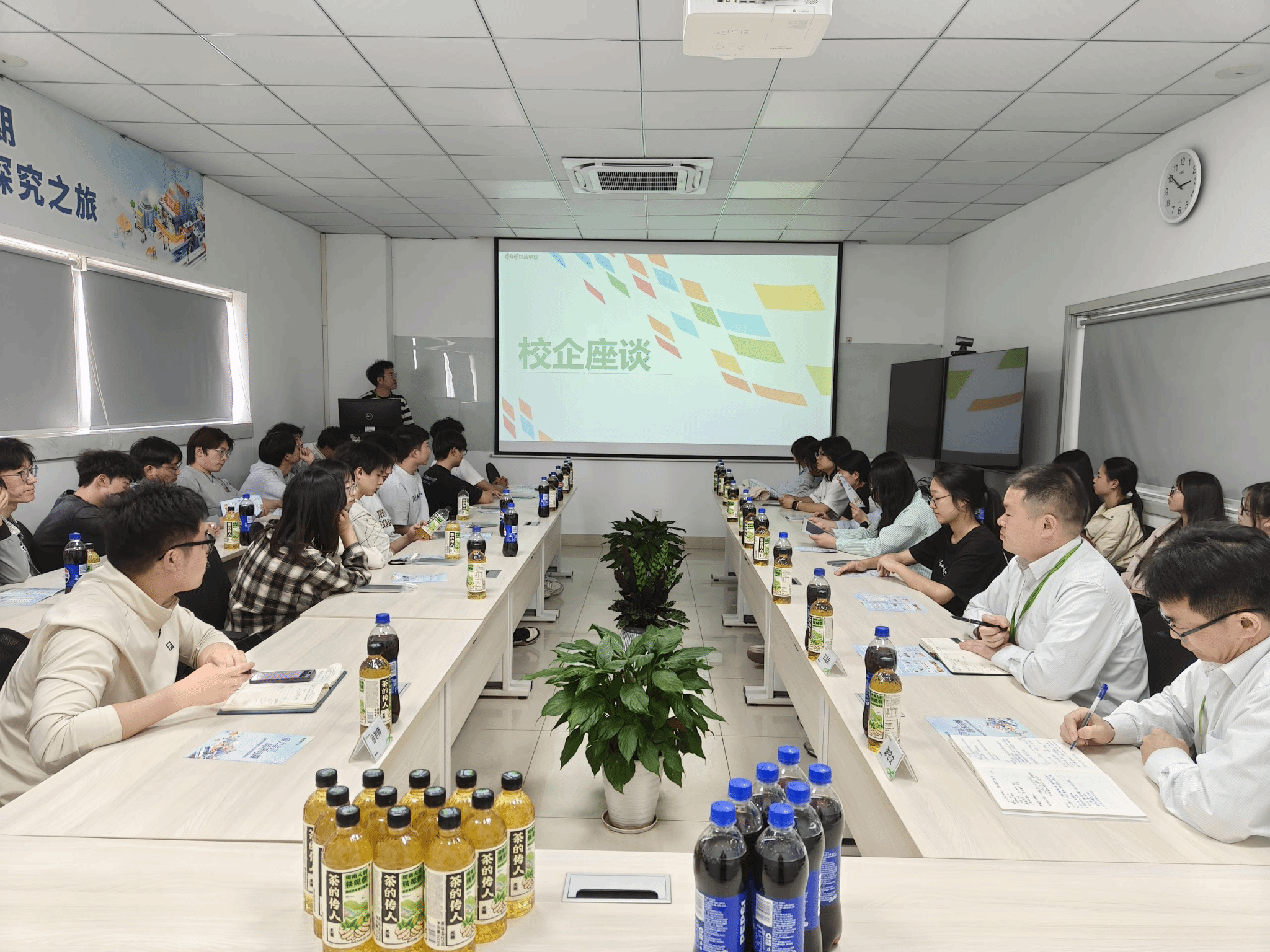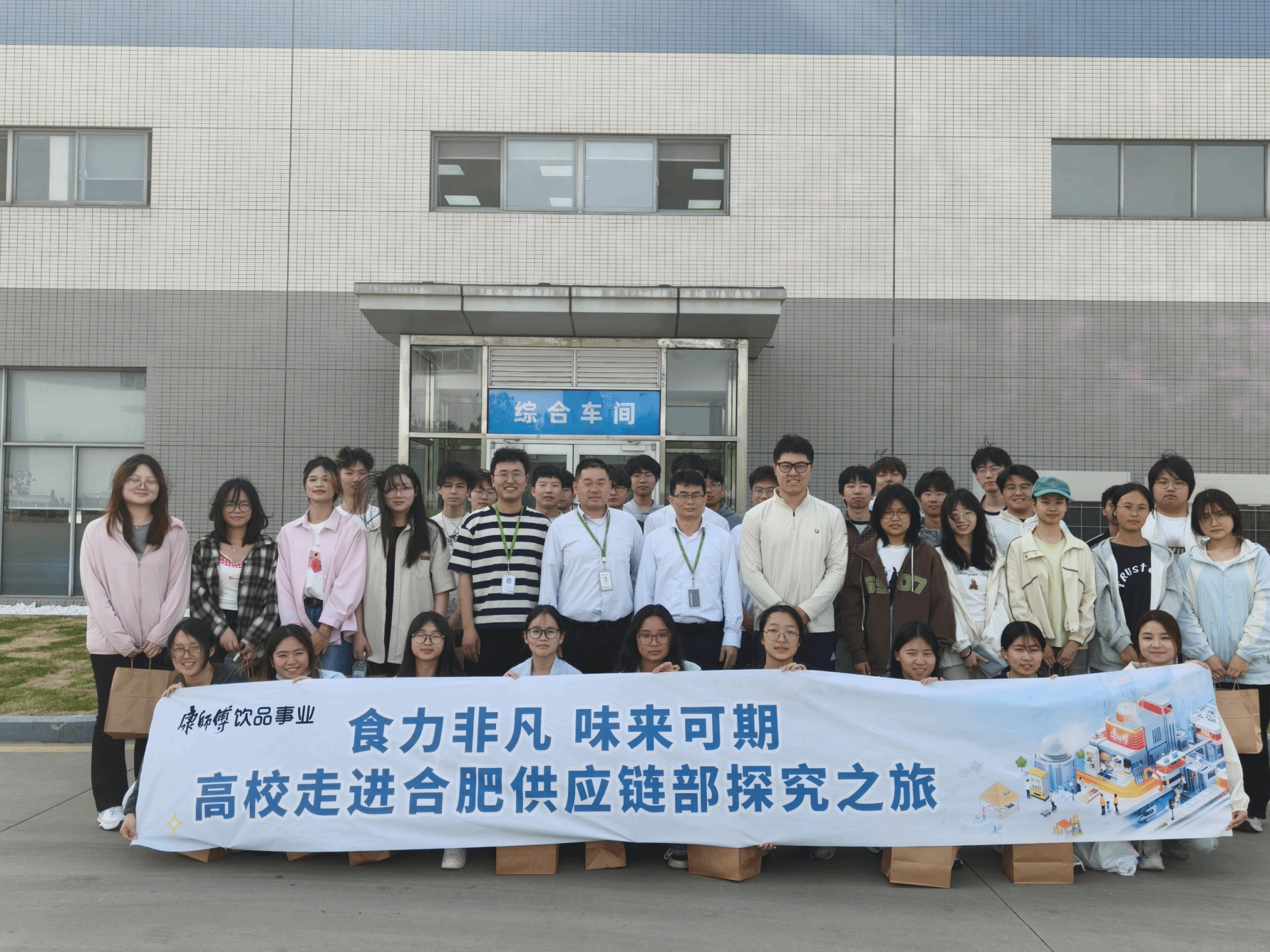 为进一步深化校企合作、拓宽毕业生就业渠道,推动应用型人才培养, 4月16日,122cc太阳成集团食品质量与安全党支部书记徐浩然带领30余名团学骨干赴康师傅控股旗下核心企业—合肥顶津食品有限公司开展校企学习交流活动。本次活动旨在搭建校企合作平台,探索产学研协同创新模式,助力员工职业发展。康师傅合肥顶津食品有限公司合肥品管处处长谢冬文、检验科科长王龙兵、校企招聘专员时义杰参加此次学习交流活动。