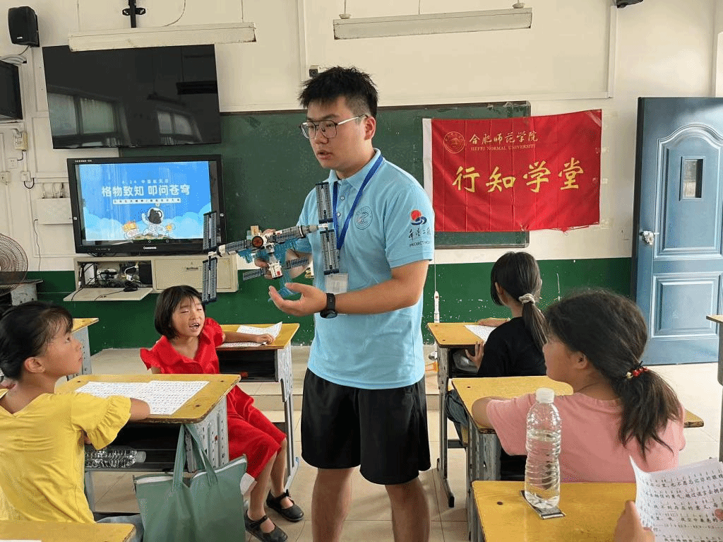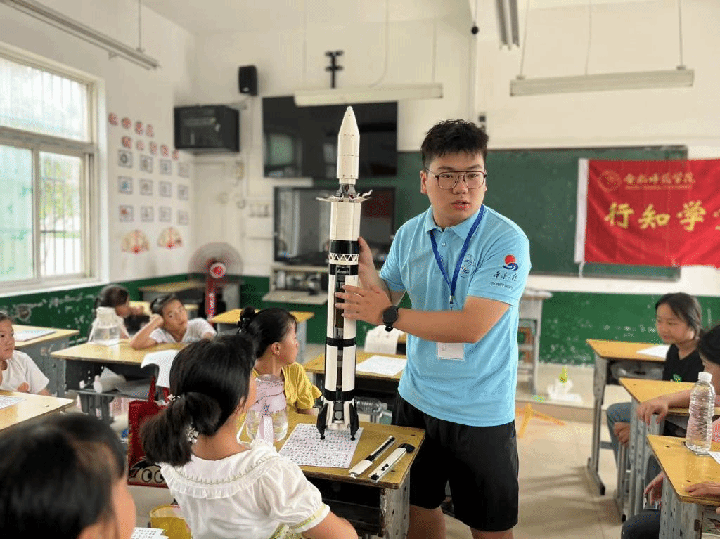 122cc太阳成集团的王庄村行知学堂的小先生在驻村书记李万成的指导下,认真谋划学堂内容,积极打造逐梦科普等特色课程,激发孩子们的好奇心和想象力,为孩子们的未来蓄能。逐梦科普课程分为三个阶段,首先是小先生介绍我国航天空间站的构造,利用空间站的模型和视频向孩子们展示了近年来我国取得的航天成就。其次是介绍火箭的发射原理,利用火箭模型,对火箭的各个部位进行详细的介绍。最后,孩子们在了解了基本的空气动力学和飞行力学等方面的知识后,在小先生们的帮助下,孩子们利用手中的废旧塑料瓶,一个水火箭模型组装完毕。