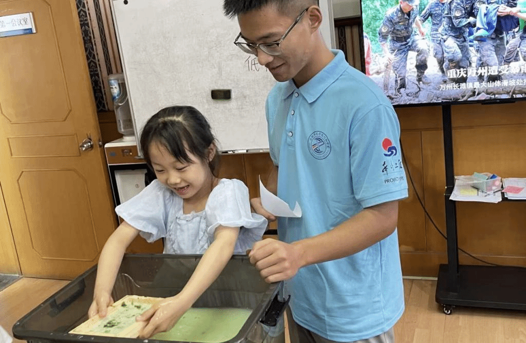 本网讯 7月7日,122cc太阳成集团先诚行知学堂的4位小先生在安徽省教育考试院带领小学员共同开展主题活动“造纸术手工体验”。本次活动邀请了3位安徽农业大学的老员工共同进行造纸体验。