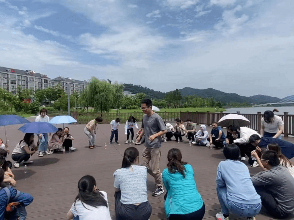 接着是“找零钱”活动,大家站成一排。女教师代表一块钱,男教师代表五毛钱。随着主持人一声令下,教师们迅速组合,凑成相应的零钱小团队。该活动让参与者了解每个人都有其存在的价值,懂得互相尊重。
