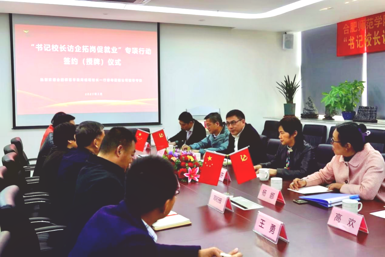 周端明代表学校对各家公司的热情接待和对公司毕业生实习就业工作的支持深表感谢,并向各公司简要介绍了学校发展历史、办学定位、专业分布、团队队伍、员工规模及人才培养等方面情况。周端明指出,学校坚持立足合肥、服务安徽、辐射长三角,不断深化“举行知旗、走应用路、创师范牌”的特色发展之路。希望通过本次走访交流,进一步深化校企双方合作,在人才培养、项目合作、科学课题研究、科技成果转化、毕业生实习就业等方面不断深化合作,推动双方实现高质量融合发展。