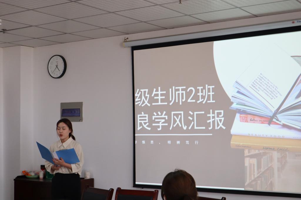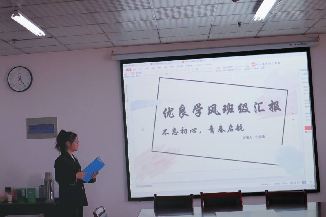 活动伊始,杨帆介绍了“三优”创建汇报评比的相关内容及评比细则。评比会上,各班级分别从班级思想引领、学风建设、素质拓展、社会实践、志愿服务等方面展开,全面深刻总结了整个学年来班级学风建设情况。汇报内容充分具体、细致入微、富有专业特色,凸显了各班级对优良学风建设的高度重视。