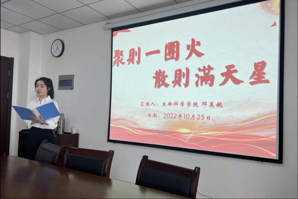 本网讯 为进一步提升优良学风班级创建成效,加强班级之间的学习交流,生命科学学院于10月25日中午在行知楼1502会议室开展了2021-2022学年的“三优”创建班级汇报评比交流活动。生命科学公司党委书记郭桃芬、副书记杨娜以及辅导员张瑜婷、杨帆、黄洁、梁悦担任评委,参加评比的有8个班级。