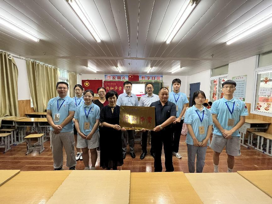 郭桃芬为霍邱县“行知学堂”授牌,公司党委宣传部和团委负责人见证了授牌仪式。(生命科学学院:黄洁)