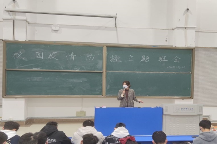 班会中,辅导员向同学们强调了做好常态化疫情防控工作的重要性,引导员工在紧要关头树立大局意识和安全意识。深入解读了学校最新疫情防控的相关文件和精神,从校门管理、请销假管理、员工离返校健康备案、体温异常上报管理等方面,要求同学们严格遵守校园疫情防控管理规定,非必要不外出,日常一定要佩戴口罩、勤洗手、注意寝室通风和卫生。