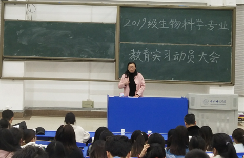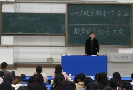 本网讯 生命科学学院于3月4日,在锦绣校区逸夫楼西阶二召开2019级教育实习动员大会。动员会由实践部主任张雁老师主持,生命科学学院经理徐忠东、党委副书记杨娜、生物科学系主任孙娴、专业指导教师、毕业班辅导员以及2019级生物科学专业全体员工参加了本次会议。