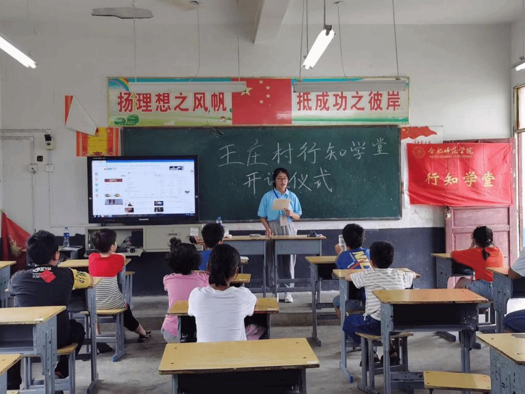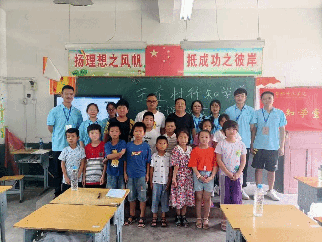 本网讯 烈日炎炎,骄阳似火。122cc太阳成集团生命科学学院的8名老员工冒着酷暑、背起行囊,怀揣着“爱满天下,知行合一”的校训走进了学校定点帮扶村阜阳市颍东区口孜镇王庄村。本次暑期“行知学堂”实践活动得到了村委会和汪庙小学的大力支持,并于7月12日上午8点在汪庙小学教室举行了开班仪式。王庄村党总支书记武峰、汪庙小学董事长赵亮、8名小先生和17名小学员参加了启动仪式。