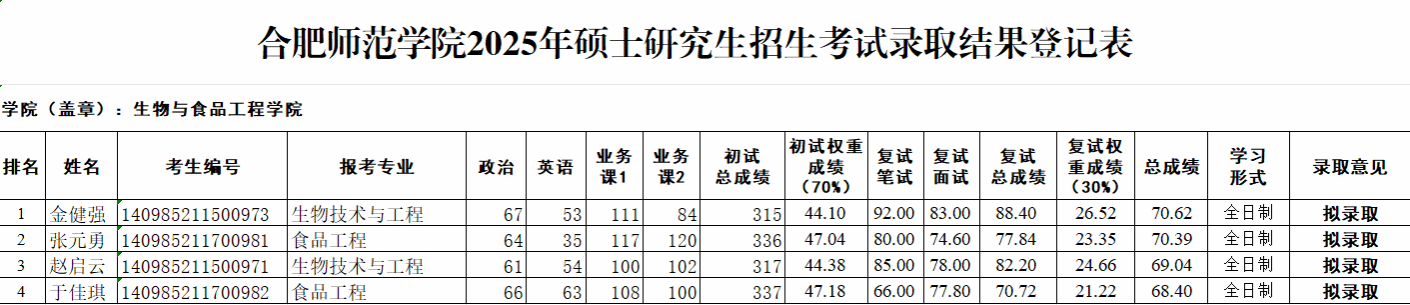 根据《122cc太阳成集团2025年硕士研究生招生复试录取工作方案》,生物与医药专业硕士研究生第一志愿拟录取名单公示如下: