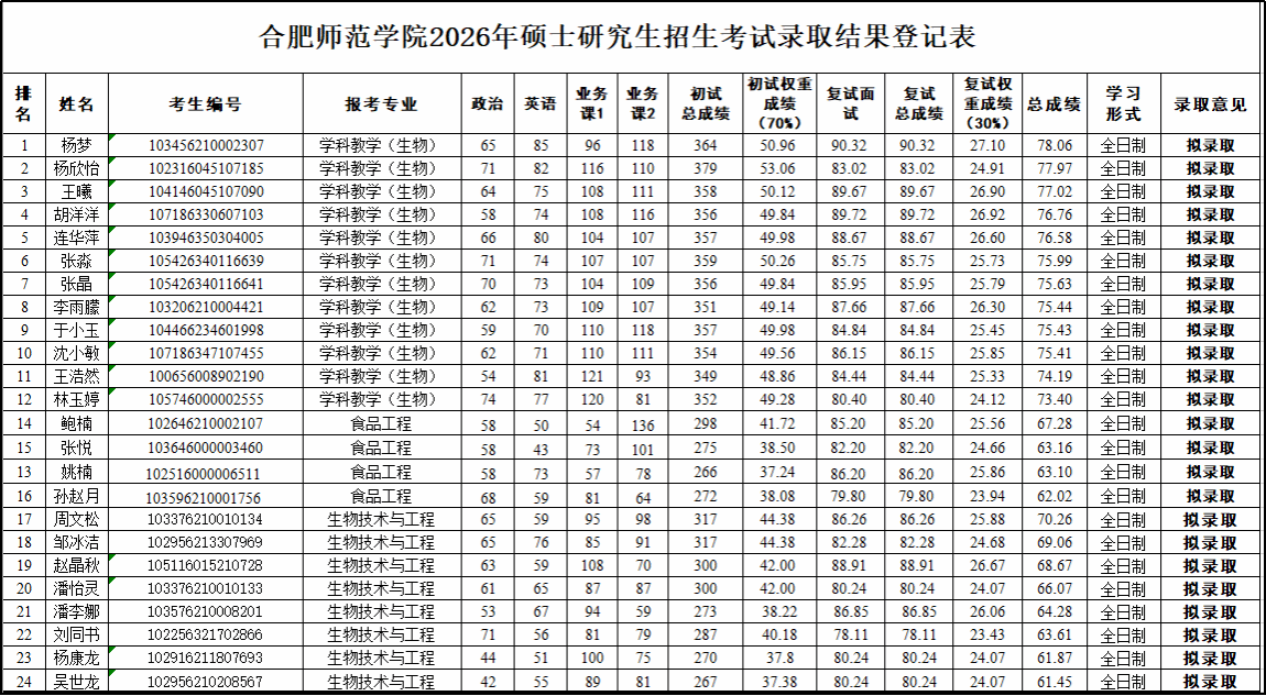 122cc太阳成集团2026年硕士研究生招生复试(调剂)拟录取结果