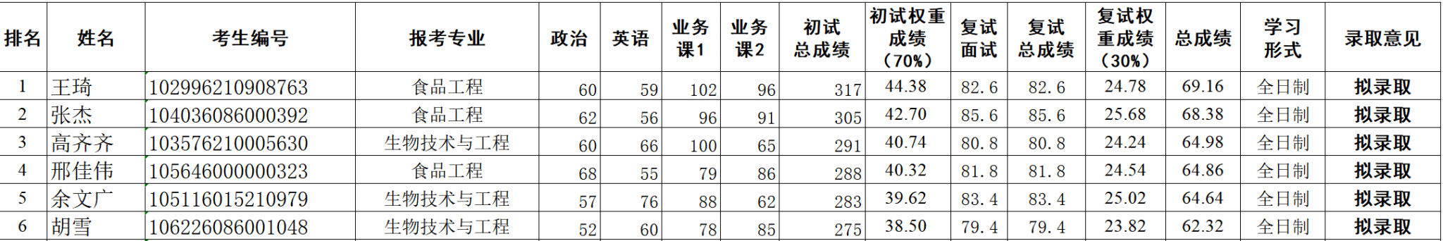 2026年硕士研究生招生(第二轮调剂)拟录取结果: