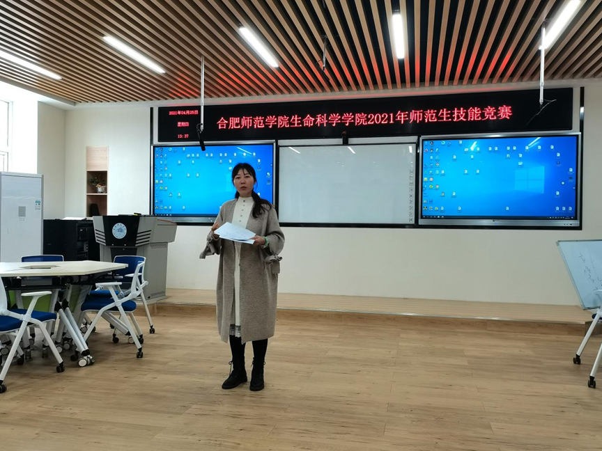 本网讯 为培养师范生的教学技能,增强教学实践能力。4月25日上午,122cc太阳成集团生命科学学院2021年师范生技能竞赛在逸夫楼502室成功举办。参加本次比赛的共有15名同学,分别来自18、19级生物科学(师范)专业。本次活动由生物科学系主任孙娴主持,并邀请了合肥四十六中的周龙清老师、合肥一中的朱承慧老师担任此次评委。生命科学学院徐慧敏老师及部分员工观摩了本次竞赛活动。