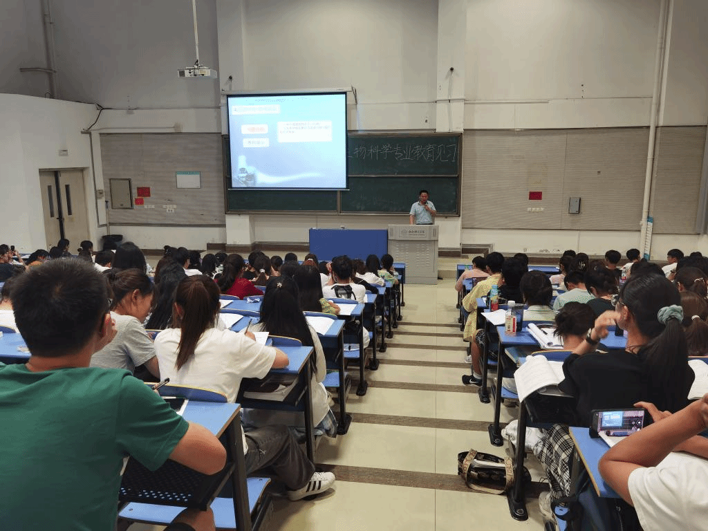 本网讯 为进一步了解基础公司产品及管理的实际情况,加强师范生对教师职业的深入了解,提高师范生的教学技能。根据生物科学专业人才培养方案及教学计划要求,生命科学学院于6月29日晚在逸夫楼西阶2教室举行了2019级、2020级生物科学(师范)专业教育见习活动。本次活动邀请了四十六中名师团队,分别是第四十六中学高级教师周龙清、宋慧、姚成龙、刘霄。活动由生物科学系教师徐慧敏主持,2019级、2020级生物科学(师范)专业全体员工参加。
