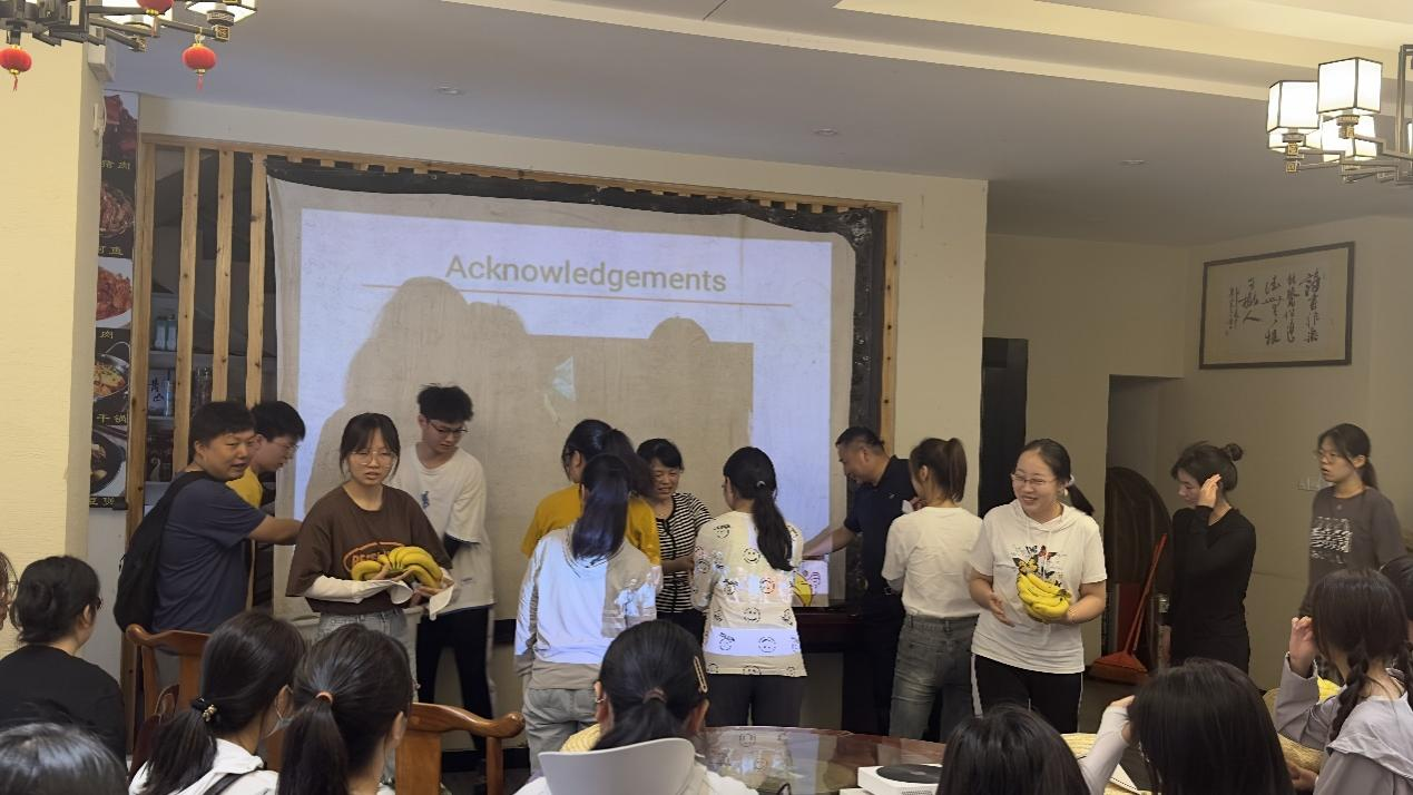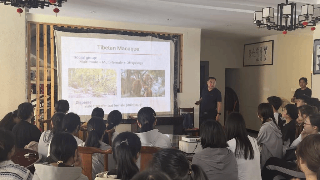 朱桂兰副经理诚挚感谢李进华教授所做的报告,她希望同学们通过这个报告不仅是学习到黄山短尾猴的相关知识,更是要在今后的学习与工作过程中,以李进华教授为榜样,学习并发扬李教授对待科学研究事业的坚持不懈、不断创新精神。随后,她还向同学们分发香蕉、西瓜等水果慰问实习生们。