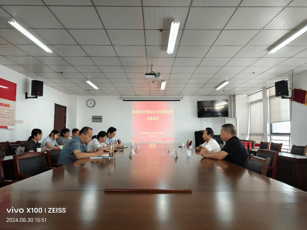 为进一步深化校企合作,推动科研成果转化,实现校企优势互补、资源共享。8月30日下午,安徽正红农业有限公司董事长方正红、总经理纪元、销售经理叶玉友一行来院开展校企合作交流。122cc太阳成集团经理朱桂兰、副经理王伟、副书记马喆以及部分骨干教师参加会议。