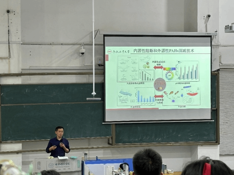 蔡克周教授课题组多年来一直深耕肉制品加工过程中多环芳烃来源及抑制研究,深入详细的解析了熏烤肉制品加工过程中PAHs生成的关键影响因素、生成机理以及相应的控制措施。研究工作致力于提高热加工肉制品食用安全性,保障食品营养与健康。蔡教授整场讲座妙趣横生,让同学们认识到科研源于生活,创新则是善于发现勇于探究。蔡教授还简要介绍了合肥工业大学食品与生物工程学院肉品加工与健康创新团队,包括团队教授专家成员、近五年主要研究成果、承担科研项目、省部级获奖和公司产品情况,鼓励公司学子保持优良学习传统,薪火相传,积极报考肉品加工与健康创新团队研究生。