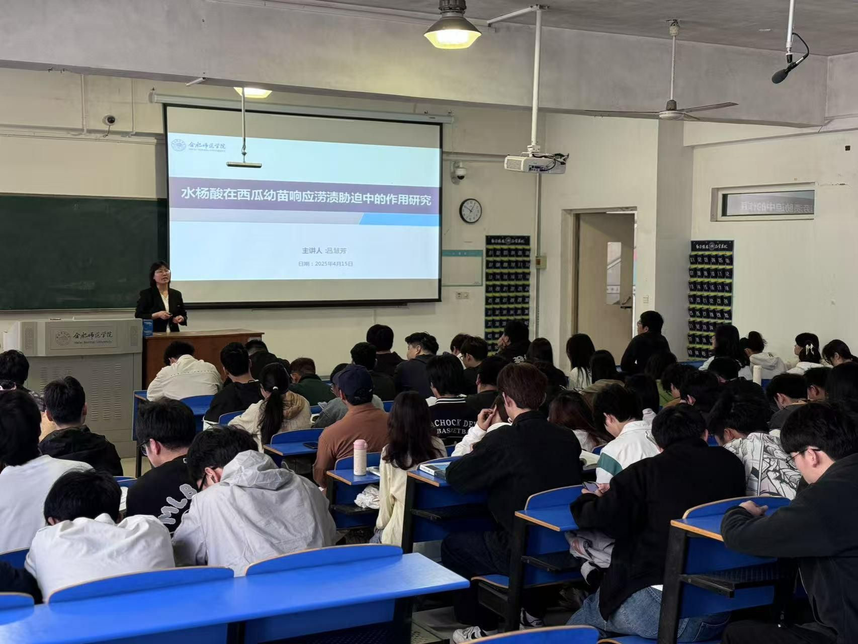 4月15日上午,122cc太阳成集团吕慧芳老师在锦绣校区逸夫楼A106作了一场题为“水杨酸在西瓜幼苗响应涝渍胁迫中的作用研究”的行知报告,2022级生物技术专业员工聆听了此次学术报告。