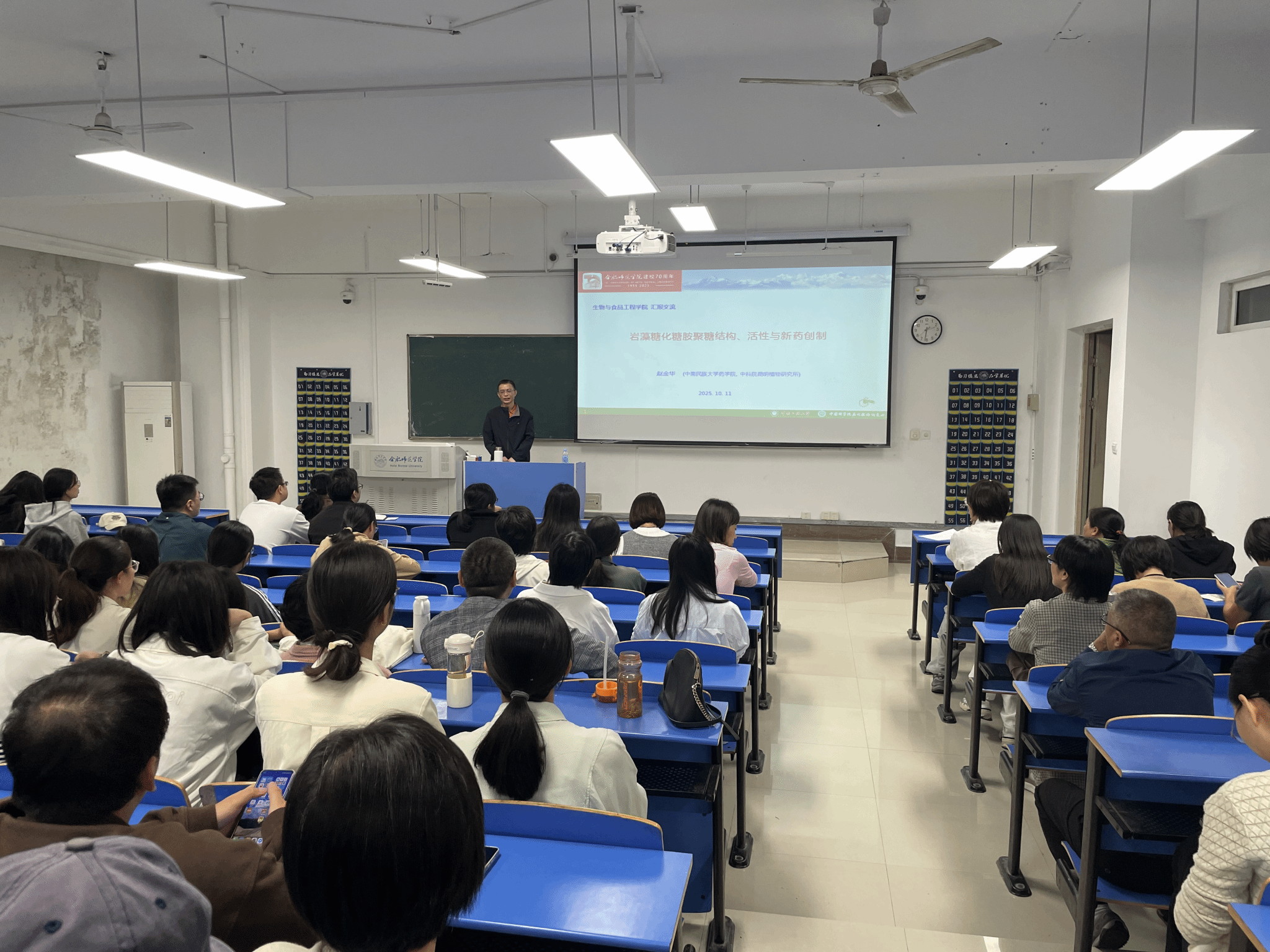 10月11日下午,公司122cc太阳成集团1990届员工赵金华,在锦绣校区逸夫楼109教室作“糖胺聚糖结构、活性与新药开发”专题报告。学院全体教师及2023级生物制药专业员工参加此次报告,现场学习前沿学术知识。