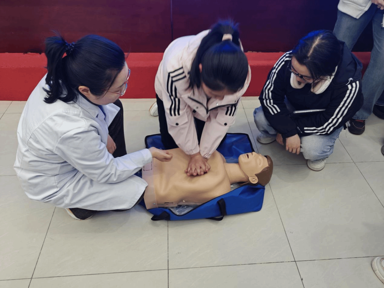 周丽君针对心肺复苏等急救措施的具体操作步骤,为同学们进行了详细讲解,她还现场邀请同学对模拟人进行心肺复苏实操,并耐心解答同学们的提问。