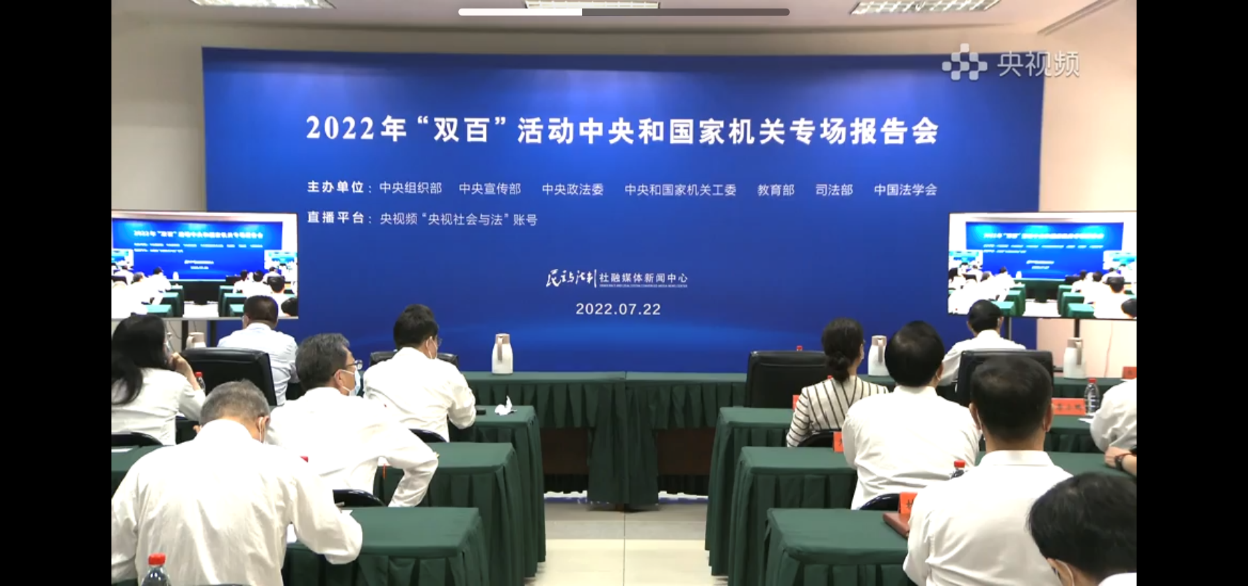 本网讯 为深入学习宣传和贯彻落实习近平法治思想,更好推动中国特色社会主义法治体系建设,7月22日10:00,生物技术教工党支部组织收看2022年“双百”法治宣讲报告会并展开热议。生命科学公司党委书记郭桃芬以及生物技术教工党支部全体党员参加,活动由该支部书记陈金武组织和主持。