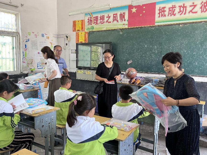 随后,郭桃芬一行来到汪庙小学慰问建档立卡员工。郭桃芬一行亲切询问孩子们的学习和生活情况,并且为他们发放了文具、书本、书包以及体育用品。鼓励孩子们要好好学习天天向上,努力成为祖国栋梁之材。