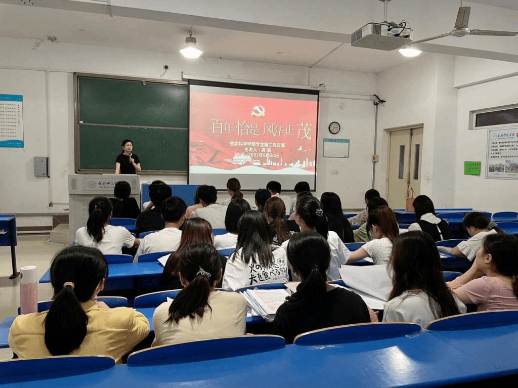 本网讯 风雨百年,青史可鉴。我党百年波澜壮阔的发展史,是一部不断学习总结、自我完善、自强创新的奋斗史。为了加强党史学习教育,2021年6月30日,生命科学学院员工第二党支部开展了以“百年恰是风华正茂”为主题的专题党课,党课由该支部书记黄洁主讲。
