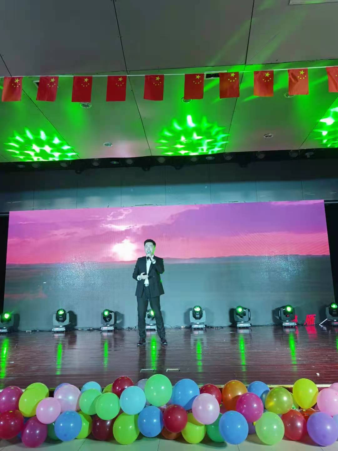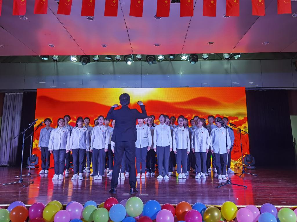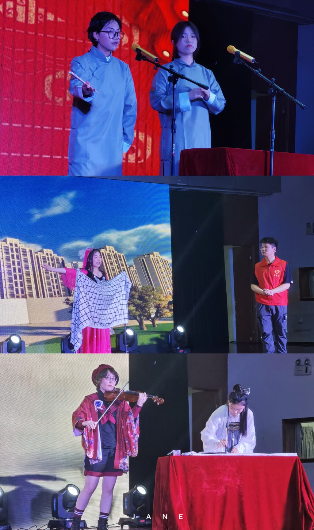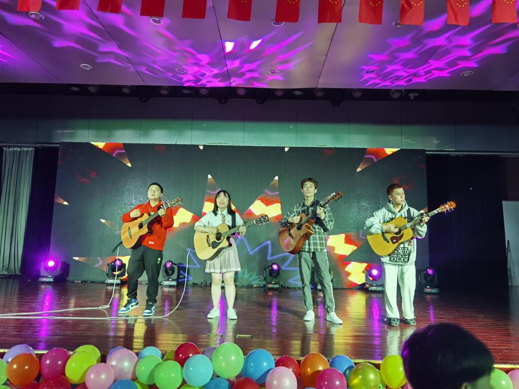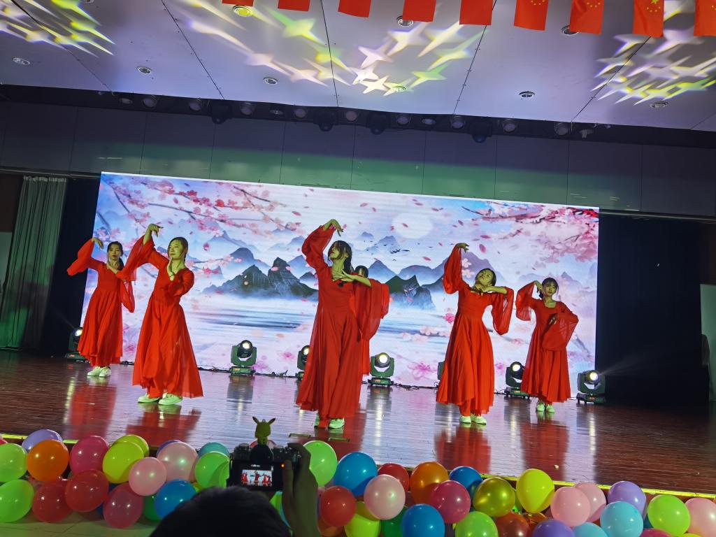2021年是中国共产党建党100周年,历史的潮流用实力和真理告诉人们,中国共产党是人民心中最崇敬的党,节目《唱支山歌给党听》与朗诵《祖国颂》表达了同学们对中国共产党崇高的敬意和对祖国深厚的情感;一场灾难,让人疲惫不堪,但是在共产党的领导下中国人民紧紧相拥在一起,与病毒较量,小品《患难与共》再次重绘了抗疫期间的暖心故事;在白雪皑皑的天山脚下聚居着一个能歌善舞的民族,塔吉古丽·亚森和阿依谢姆古丽·努尔等同学献上的新疆舞蹈《麦西来普》和石明豪等同学演唱的《民族特色歌曲串烧》让我们身临其境,仿佛看到了他们在天山脚下生活的场景;而由赵晶晶和戚雨晨带来的相声《旅游记》用说学逗唱带我们又一次领略新疆的浩瀚沙海;十里画廊,雕梁绘栋绵延而去,廊畔河水幽碧,绿柳长堤,中国舞《牵丝戏》给观众以视觉上的冲击;节目《青瓷墨香》在书法中融入中西方乐器,传统与现代的碰撞,中西方文化的融合,更是别有一番风味在其中。晚会期间不仅有同学们的精彩表演,老师们也被作为嘉宾邀请上台演出。校团委姚瑶老师亢音高唱《这片海有我》点燃了现场的气氛;杨帆声情并茂演唱的《鸿雁》获得了同学们热烈的掌声和欢呼,歌曲结束后,杨帆带领少数民族同学一起为到场的领导老师们献上纯洁的哈达,以表达美好的祝愿。李万成与杨帆合作弹唱的《外面的世界很精彩》更是感染观众们一同参与其中;晚会在大合唱《爱我中华》的精彩演唱中完美落幕。舞台上的演出精美绝伦,舞台下挥舞着国旗的老师和同学们更是热情高涨。
