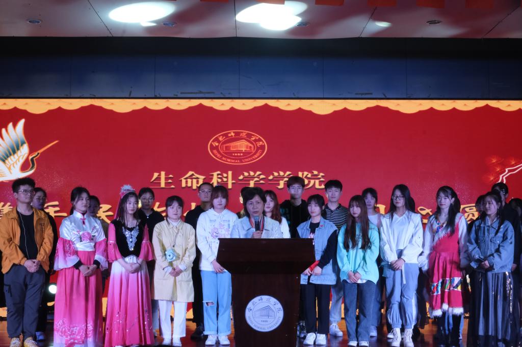 本网讯 为迎接“五四”青年节和庆祝建党100周年,切实增强同学们对伟大祖国、中华民族、中华文化、中国共产党和中国特色社会主义的认同,巩固和发展同学们民族团结的思想基础,生命科学学院2020级新生在辅导员黄洁的组织下,杨帆的指导下,于4月22日晚在老员工活动中心,举办了以“携手民族情,共筑同心圆”为主题的民族团结晚会。员工工作处处长陆涛、生命科学公司党委书记郭桃芬、经理徐忠东、副经理朱桂兰、副书记杨娜、校团委姚瑶老师以及生命科学学院部分教师和辅导员出席晚会,师生齐聚,共唱民族团结之歌,共诉热爱祖国之情。