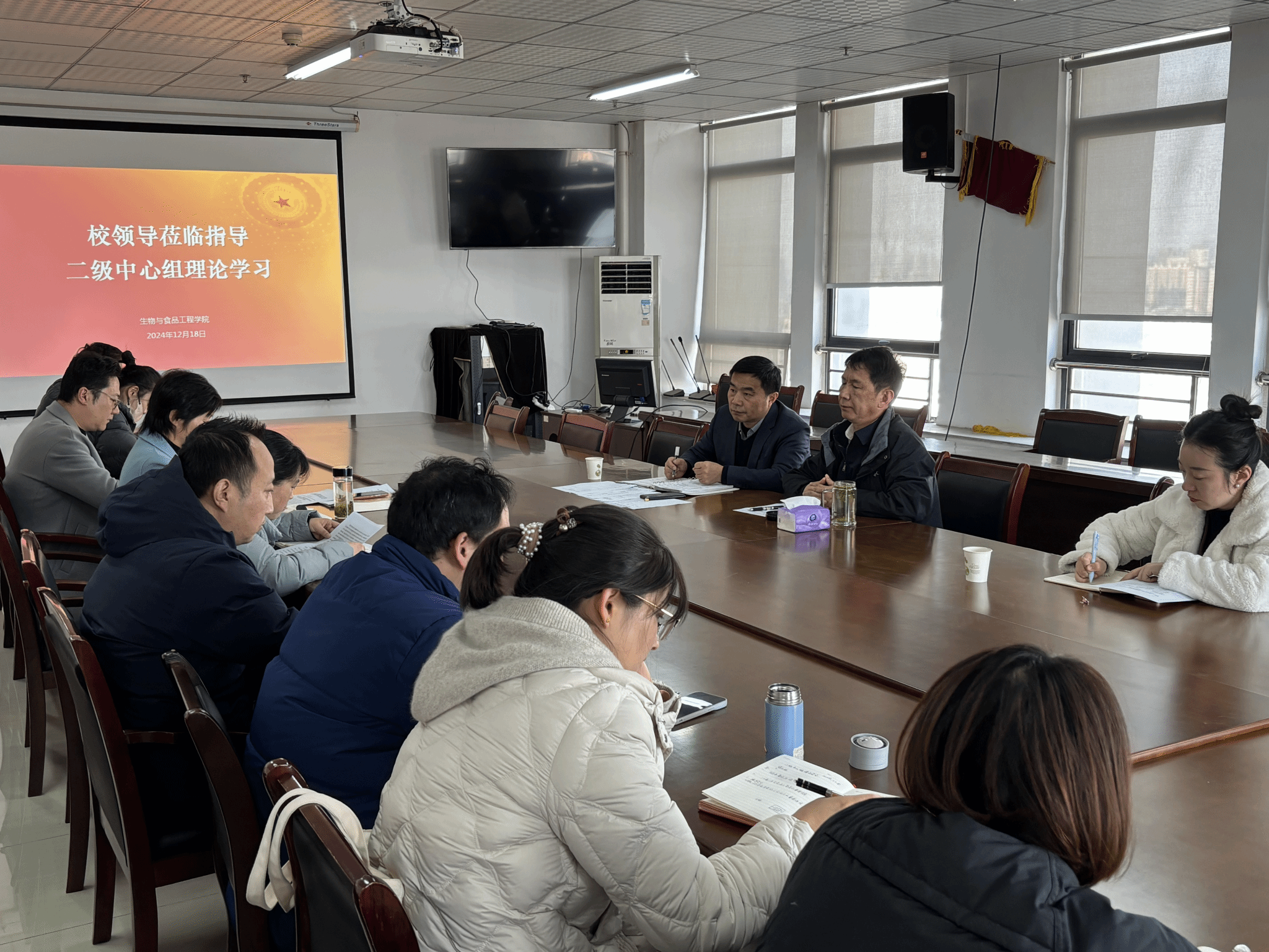 12月18日下午,院纪委书记、监察专员徐文林在纪委办负责同志的陪同下,深入122cc太阳成集团旁听并指导该公司党委中心组(扩大)理论学习会。生物与食品工程公司党政班子成员、党委委员、党支部书记参加学习会,会议由公司党委书记郭桃芬主持。