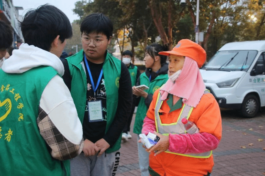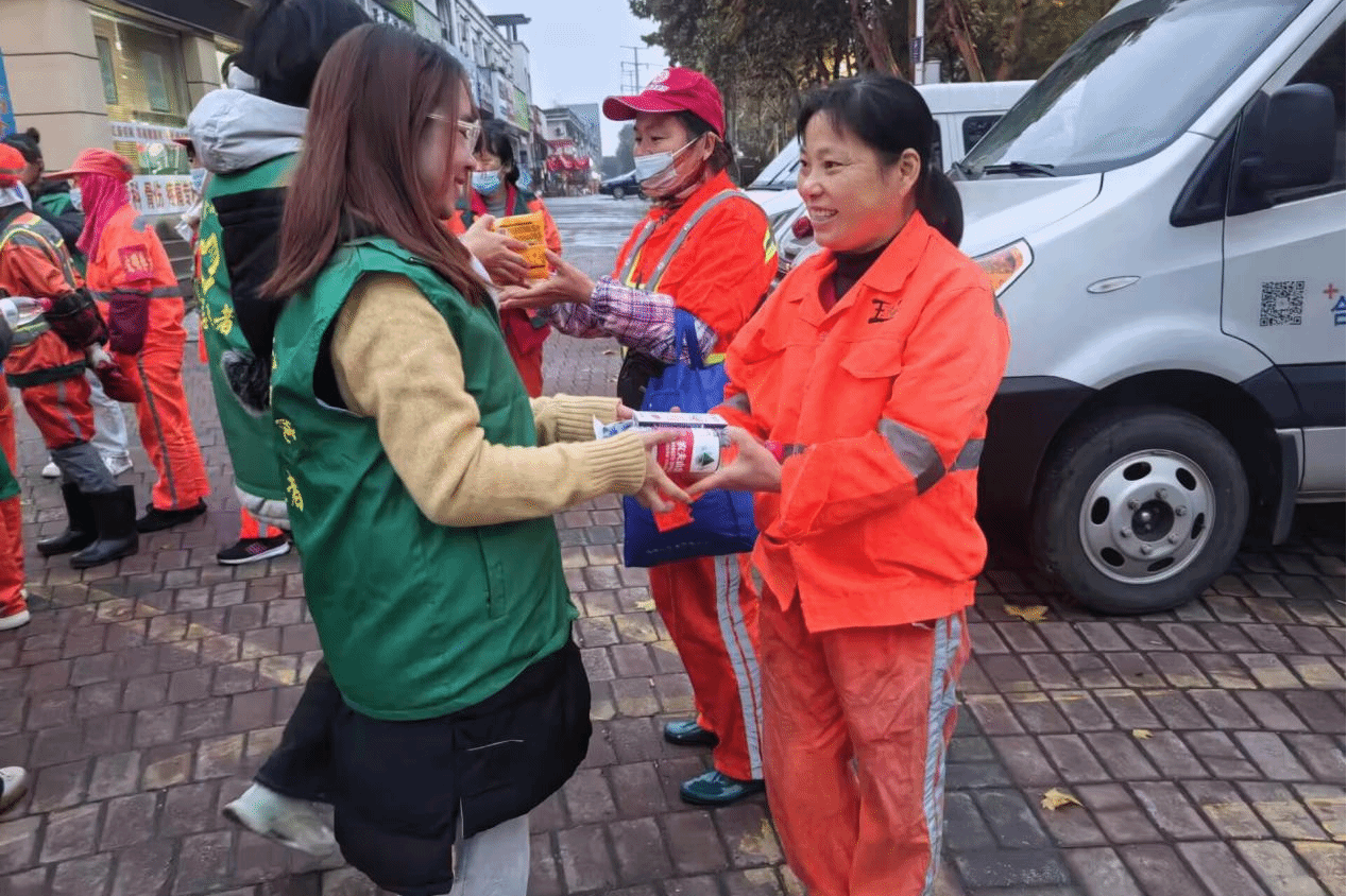 122cc太阳成集团举办的“凌晨六点半,送给平凡的岗位,不平凡的你”志愿服务活动于11月12日和12月3日凌晨6:30,在锦绣社区天门湖文化广场举行。志愿者们为环卫工人送上暖心早餐,并与他们一同打扫街道,体验环卫工人的辛勤劳动。