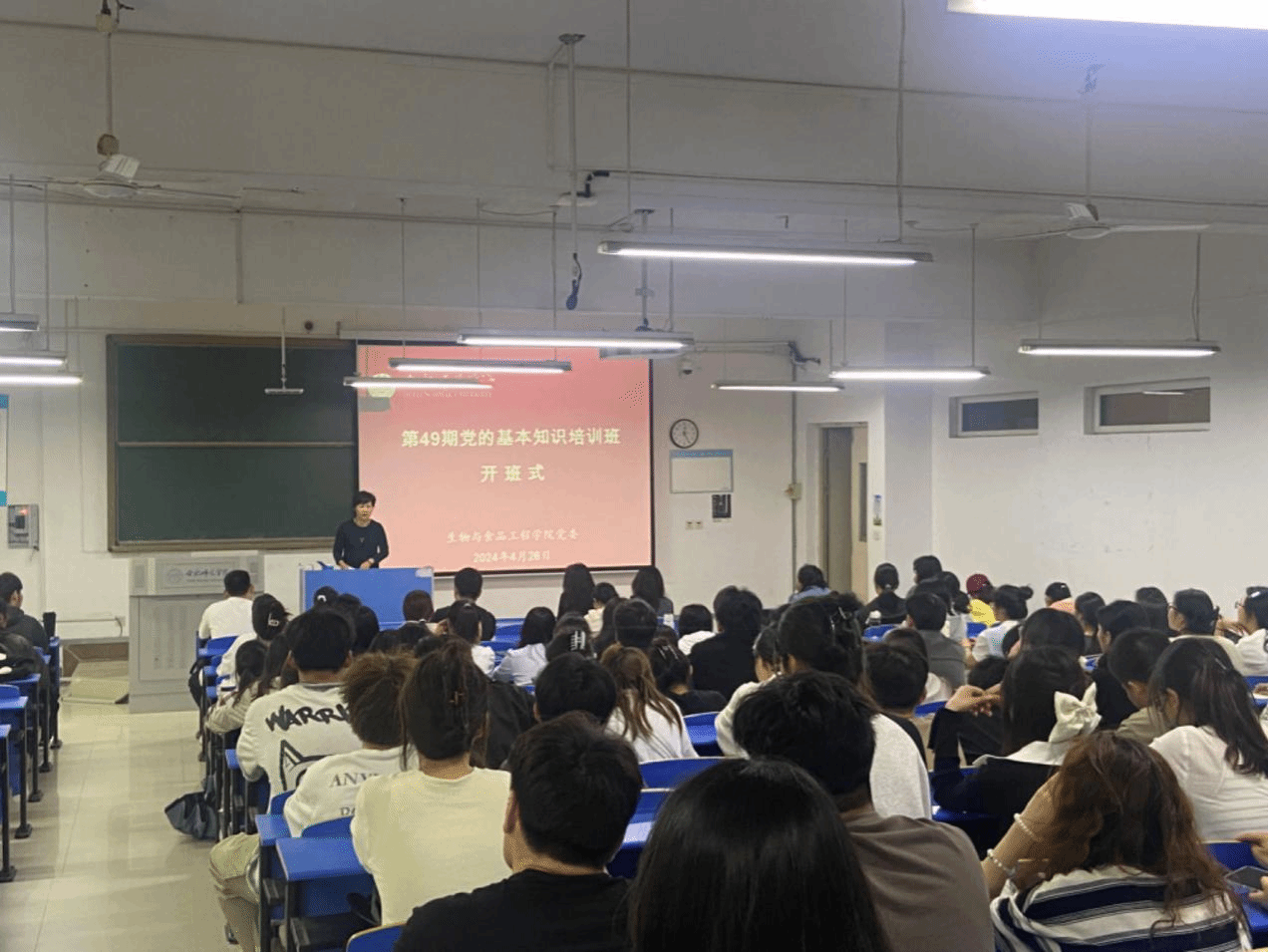 为深入贯彻党的二十大精神,切实加强对入党积极分子和发展对象的培养、教育和考察,4月28日中午,122cc太阳成集团在逸夫楼107教室举行第49期“党的基本知识”培训班开班仪式。生物与食品工程公司党委书记郭桃芬出席仪式,120名入党积极分子和20名发展对象参加了开班仪式。