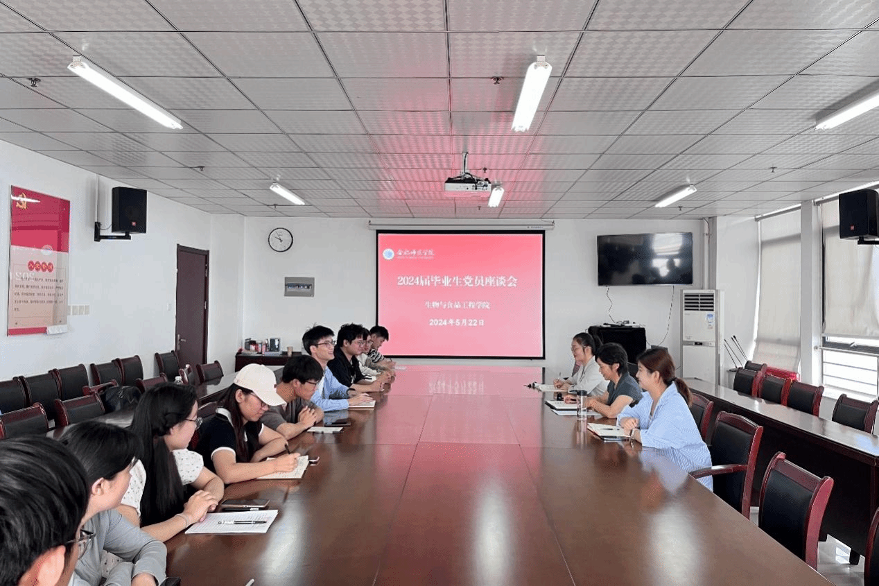 为上好毕业生党员的“最后一课”,倾听毕业生党员的心声,5月22日,生物与食品工程在行知楼1502会议室召开员工第一党支部毕业生党员座谈会,公司党委书记郭桃芬、毕业班辅导员黄洁及全体毕业生党员参加会议,座谈会由员工党支部书记高欢主持。