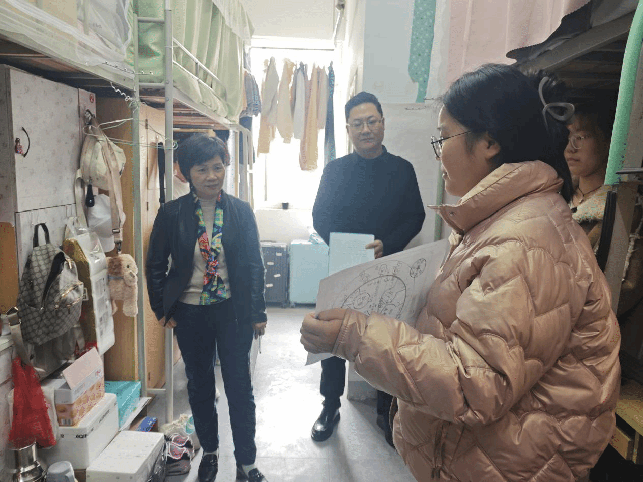 评委老师们深入寝室,聆听同学们讲述寝室故事,从寝室卫生状况、寝室装扮、寝室氛围、寝室名和室徽等方面进行打分。干净的环境、和谐的氛围,老师和同学们都在温馨的寝室中感受到了活动的价值和意义。