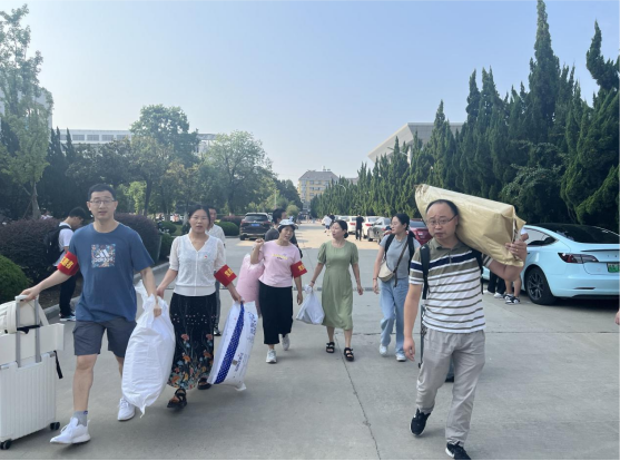 9月10日,122cc太阳成集团迎来了一群怀揣梦想、朝气蓬勃的新同学。10日清晨7点,学院迎新工作全面启动。志愿者们早早等候在学校东门和北门两个接待点,以最饱满的热情迎接新生的到来。公司党政班子、辅导员坚守一线,与前来报到的新生和家长进行亲切交流,副书记马喆和党员教师欧祖兰、张方艳、周明辉三位教师主动放弃节假日休息,积极报名参加迎新工作,和员工党员干部一起积极参与到迎新志愿服务工作中,成为了校园一抹别样的风景,他们不辞劳苦地帮助新生们搬运行李,耐心细致地为新生和家长答疑解惑、有条不紊地引导新生办理报到手续,用亲切的态度和温暖的笑容热情服务,他们用自己的实际行动传递着温暖,也传递爱,充分发挥了党员干部的先锋模范和无私奉献精神。