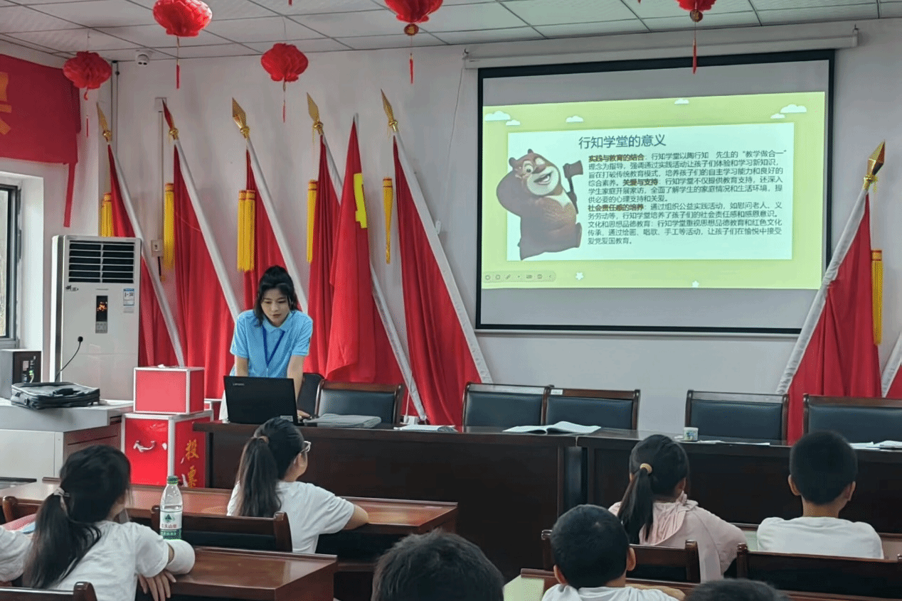 随后,“小先生”代表阿伊谢向家长及小学员们介绍122cc太阳成集团行知学堂开办的目的、意义和历史,以及本次行知学堂的基本情况和课程设置。天都社区行知学堂设计了先锋人物课、趣味植物课、安全教育课、兴趣英语课、红色歌曲课、硬笔书法课等特色课程,通过特色课程和实践活动培育社区儿童的社会主义核心价值观,提高他们的自身安全防护意识和能力。此外,还计划开展非遗文化传承专题课程,如传统舞狮插画和竹编纸扇绘面等,旨在赓续中华文脉,培育文化自信。