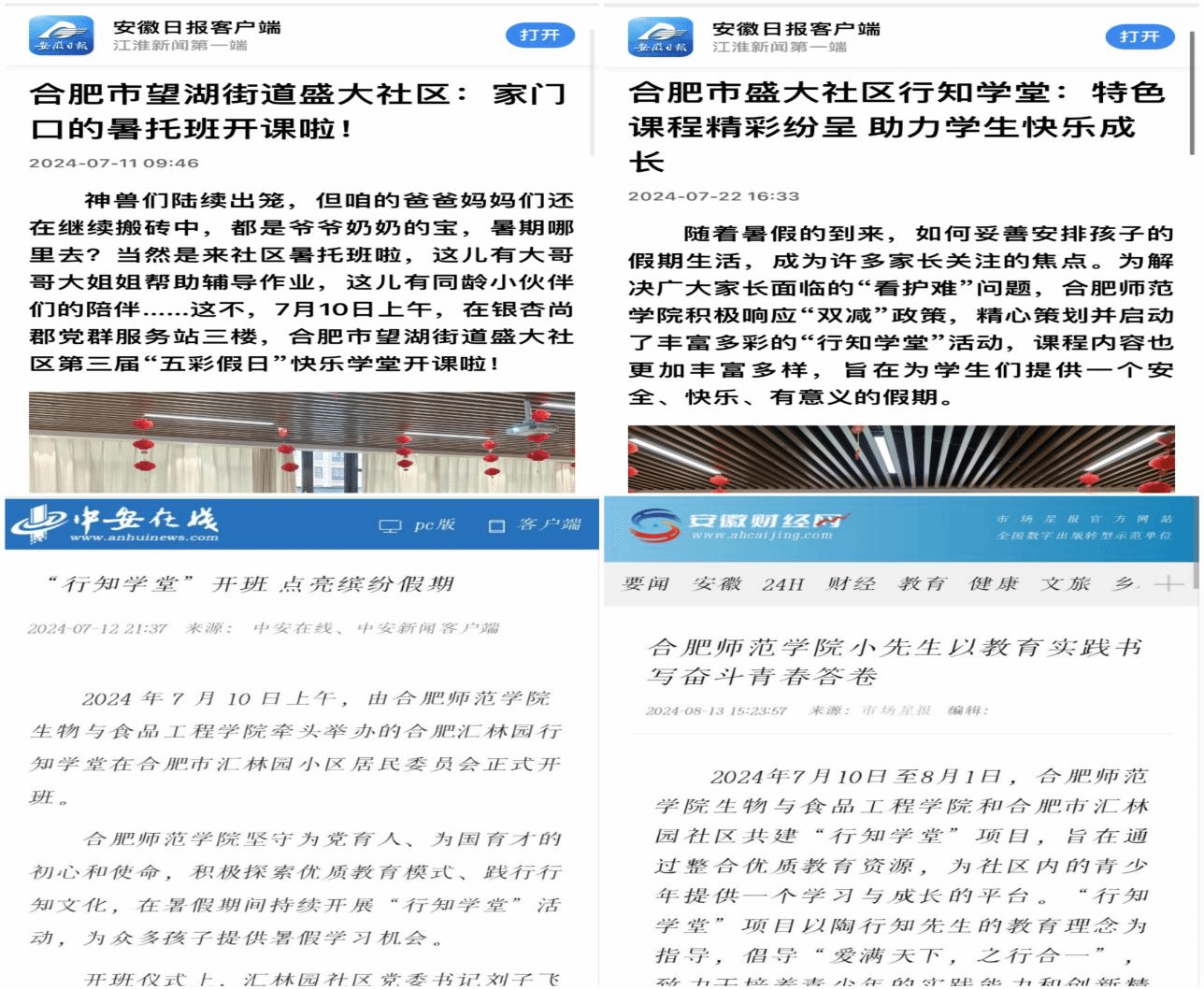 《中青校园》《大皖新闻》《安徽日报》等多家媒体报道122cc太阳成集团行知学堂
