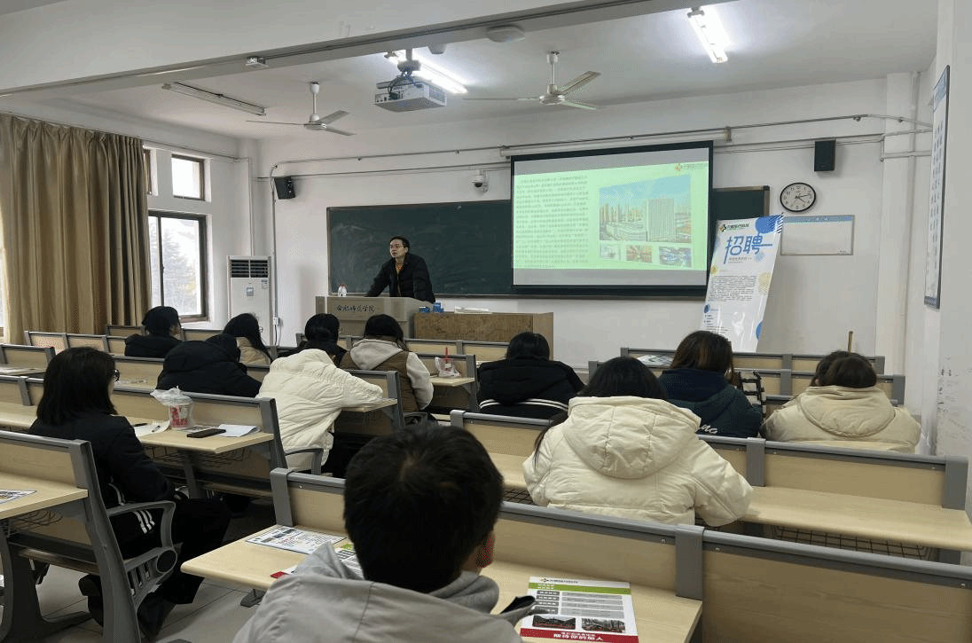 正大集团安徽区人力资源总监林光阳和安徽天星医疗科技有限公司综合部经理管建超分别结合PPT和公司宣传视频,从公司的发展历程、未来发展和公司特色以及招聘所需人才、岗位需求和工资待遇等情况向同学们作了详细的介绍,并耐心细致回答了同学们共同关心的企业发展与个人成长等方面的问题。