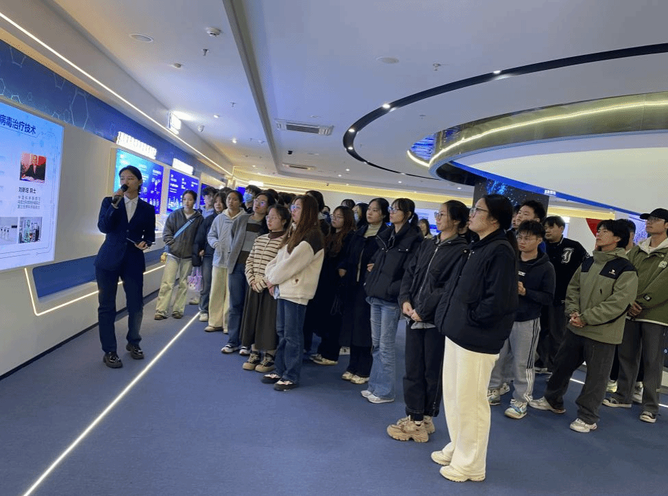 同学们先后参观了安科生物的企业文化展厅、产品生产线和科研实验室等。了解安科生物的集团架构、发展历程、业务领域和创新成果等。近距离接触细胞培养室、分析室和制剂中心等生物制药实验室的工作内容和实验环境,熟悉了微生物发酵、干扰素生产与纯化等相关工艺流程。
