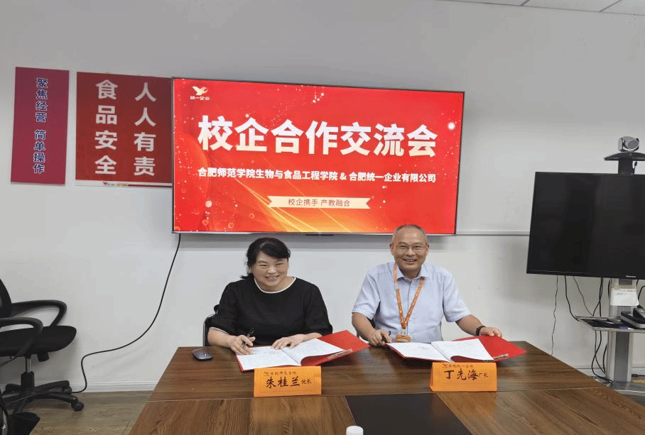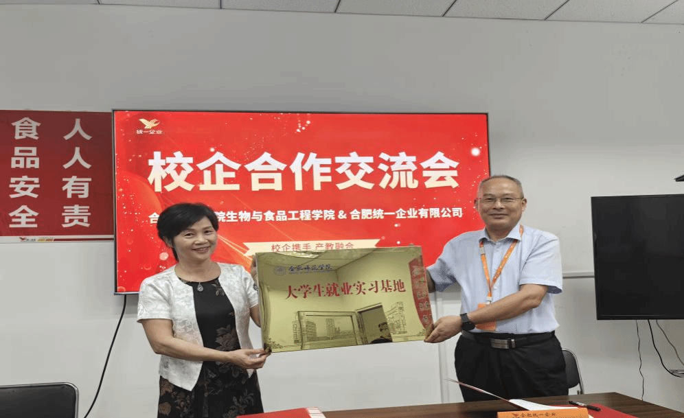 此次访企,受到了合肥统一有限公司厂长丁先海、生产部经理侯振宁等人的热情接待。双方进行了深入的座谈交流,就企业发展现状、人才需求以及学院专业设置、课程安排、员工实习就业以及发展等方面进行了全面的探讨交流。现场双方顺利签订了就业实习合作协议,并举行了共建老员工就业实习基地授牌仪式,为毕业生搭建更加广阔的实习就业平台。