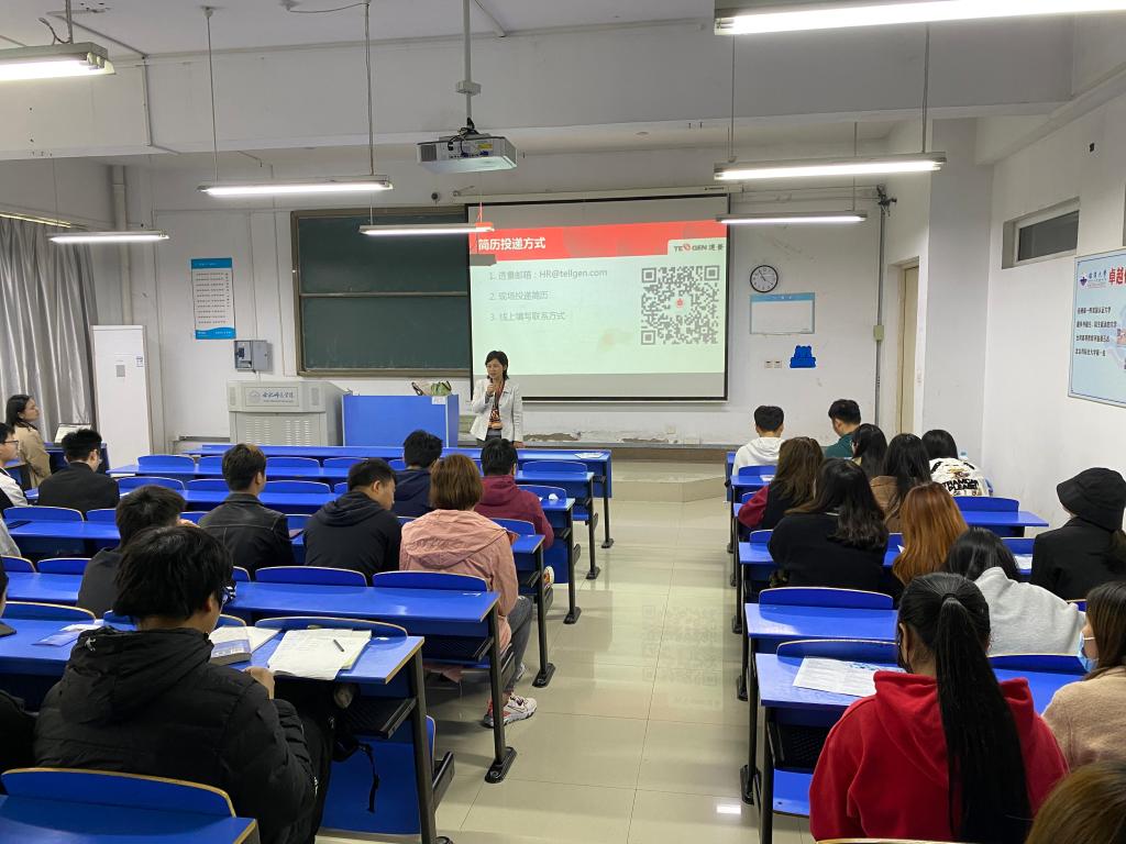 会议伊始,透景生命的人事主管郑经理首先结合PPT和公司宣传视频,从透景生命的发展历程、未来发展和公司特色以及“肿瘤标志物”、“HPV检测”等项目进行了介绍。重点介绍了此次的招聘岗位“临床监查员”“研发工程师” “质量检测工程师”的岗位要求、工资待遇、住宿条件等情况,希望生科院同学积极投递简历。最后,她悉心回答了同学们关心的企业发展与个人成长等方面的问题。