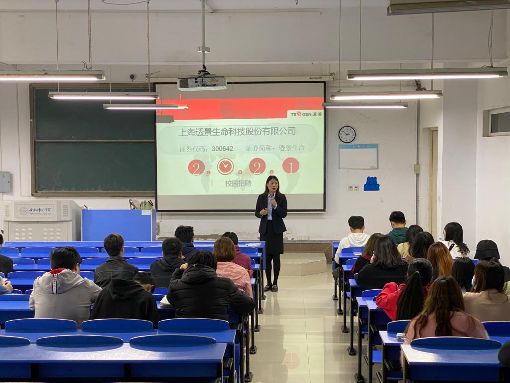 本网讯 为深入贯彻落实中央和省委“稳就业”“保就业”决策部署,促进毕业生充分就业。4月27日上午,生命科学学院在逸夫楼A107举办了上海透景生命科技股份有限公司专场招聘宣讲会。公司党委书记郭桃芬、副书记杨娜、副经理朱桂兰、毕业班辅导员黄伟丽以及2017级部分毕业生参加了此次招聘会。