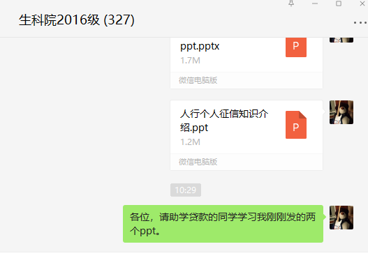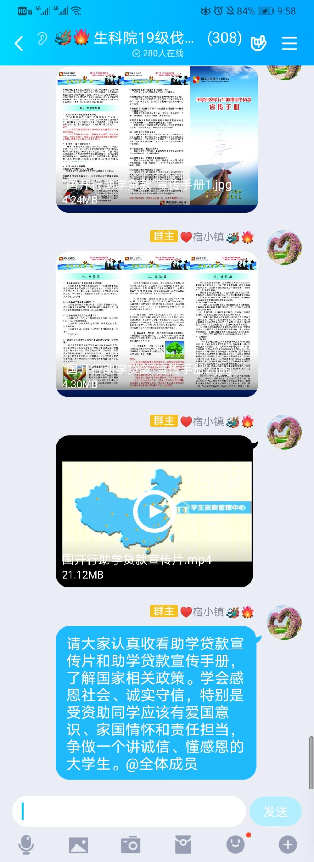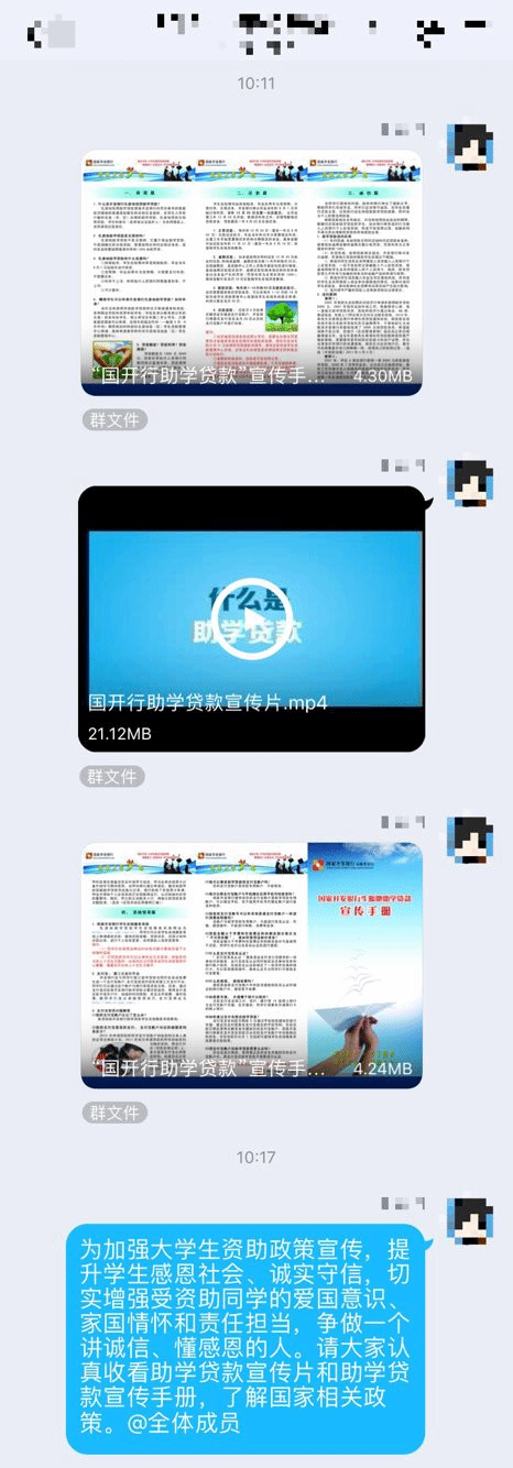 2.观看影片及发放宣传手册。生命科学学院各个年级辅导员分别将助学贷款宣传片、宣传手册ppt线上发放给员工,让员工更加熟悉贷款流程。
