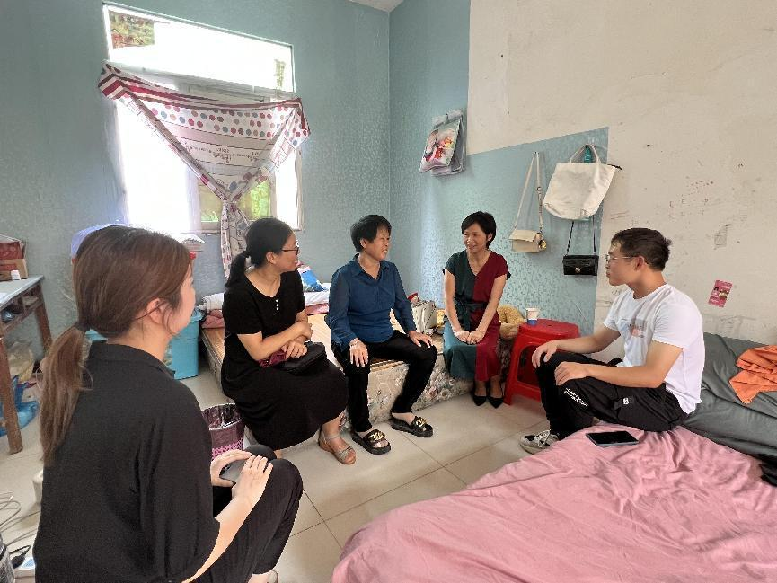 郭桃芬一行走访了砀山县贫困员工张同学和长丰县贫困员工王同学家庭,全面了解俩员工家庭经济状况和暑期居家学习生活情况,在员工家中,与员工家长亲切交谈,深入了解员工家庭的实际困难,向他们宣传党和国家以及学校对贫困员工的各项资助政策,反馈员工在校的学习、生活状况,并向贫困员工发放了慰问金。