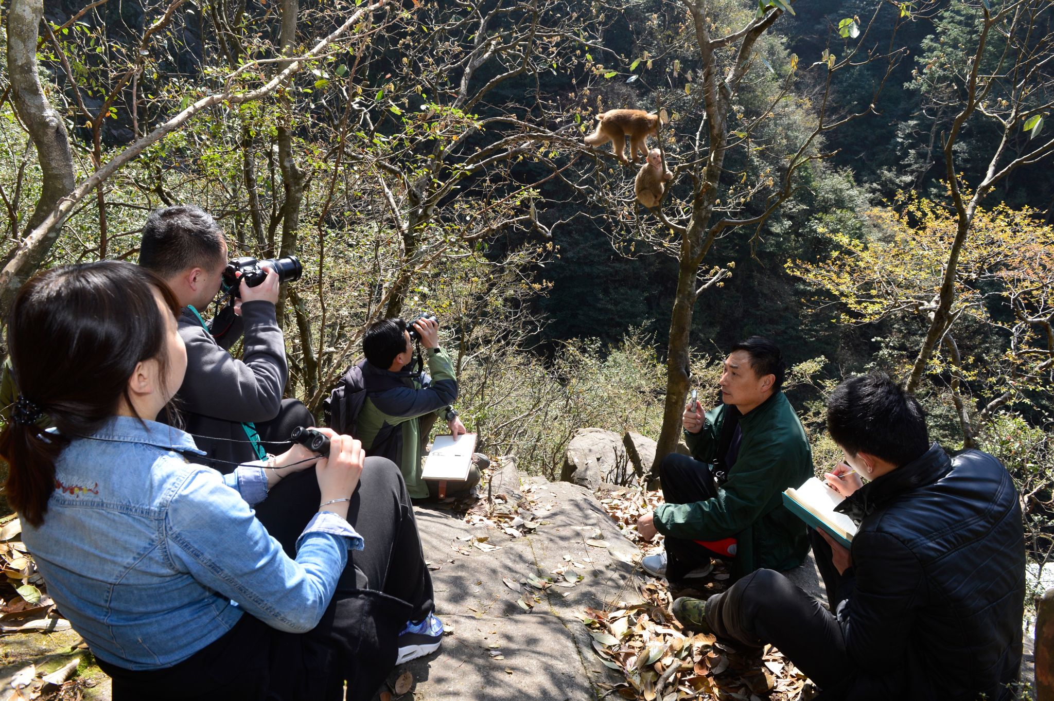 实地考察后,李进华给员工们作关于黄山短尾猴的学术报告