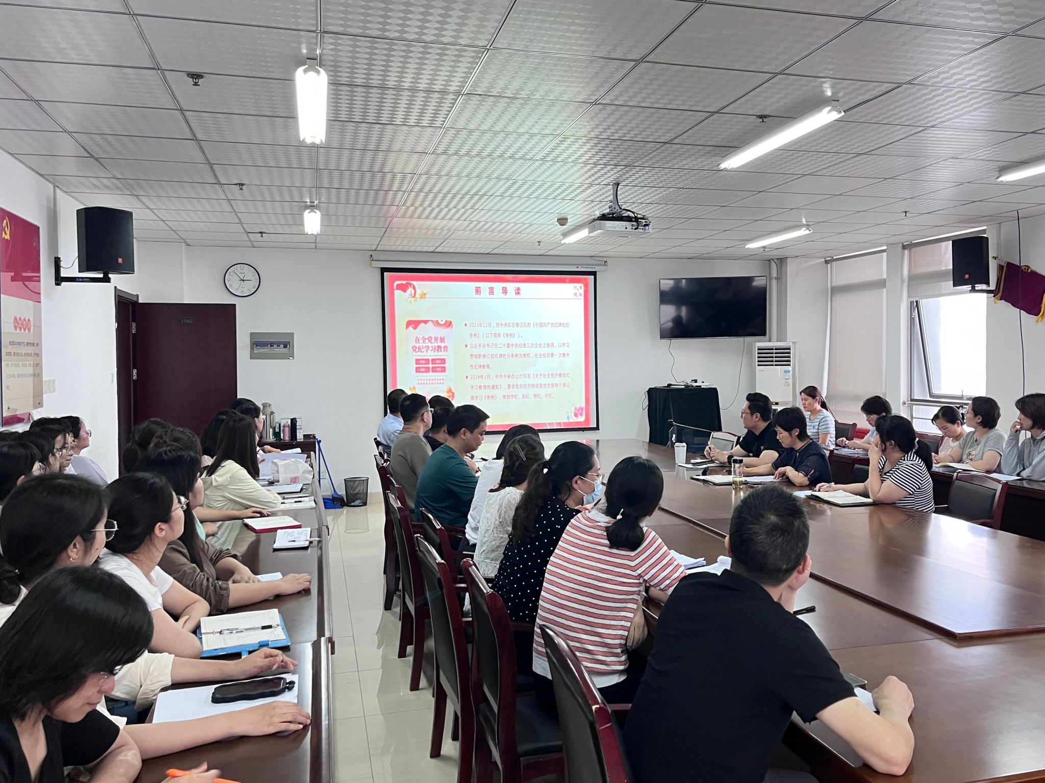 为落实关于党纪学习教育的相关要求,推进党纪学习教育走深走实,6月19日下午,在行知楼1502室,生物与食品工程公司党委书记郭桃芬以《学纪 知纪 明纪 守纪 自觉做忠诚干净担当的合格党员》为题,为全体教工党员讲授党纪学习教育专题党课。